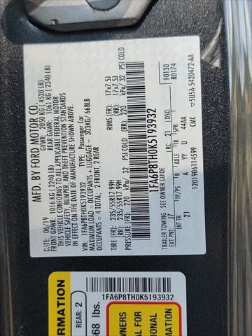 Come see this 2019 Ford Mustang EcoBoost. Its transmission and Intercooled Turbo Premium Unleaded I-4 2.3 L/140 engine will keep you going. This Ford Mustang comes equipped with these options: ENGINE: 2.3L ECOBOOST (STD) Wheels: 17 Sparkle Silver-Painted Aluminum Wheels w/Locks Trunk Rear Cargo Access Trip Computer Transmission: 6-Speed Manual -inc: reverse lockout pull ring Tires: P235/55R17 BSW AS Tire Specific Low Tire Pressure Warning Tire mobility kit and SYNC Communications & Entertainment System -inc: enhanced voice recognition communications and entertainment system 4.2 LCD screen in center stack AppLink 911 Assist and 2 smart charging USB ports. Test drive this vehicle at Town and Country Ford 5041 Ford Pkwy Bessemer AL 35022.