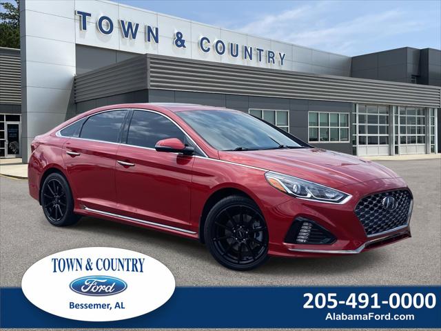 Look at this 2019 Hyundai Sonata Sport. Its Automatic transmission and Regular Unleaded I-4 2.4 L/144 engine will keep you going. This Hyundai Sonata features the following options: SCARLET RED FIRST AID KIT CARPETED FLOOR MATS BLACK LEATHER BOLSTER/CLOTH INSERT SEATING SURFACES -inc: sport bolsters Wheels: 17 x 7.0J Aluminum Alloy Wheels w/Silver Accents Valet Function Trunk Rear Cargo Access Trip Computer and Transmission w/Driver Selectable Mode and Oil Cooler. Stop by and visit us at Town and Country Ford 5041 Ford Pkwy Bessemer AL 35022.